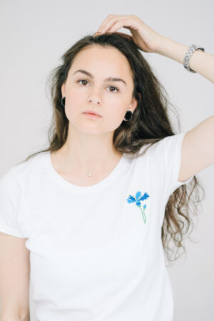 Женская майка «Сэрца» Изображение сердца сделано вышивкой Размеры: XS-L, остальные под заказ Цвет: белый Состав: 100% хлопок Сделано в Беларуси